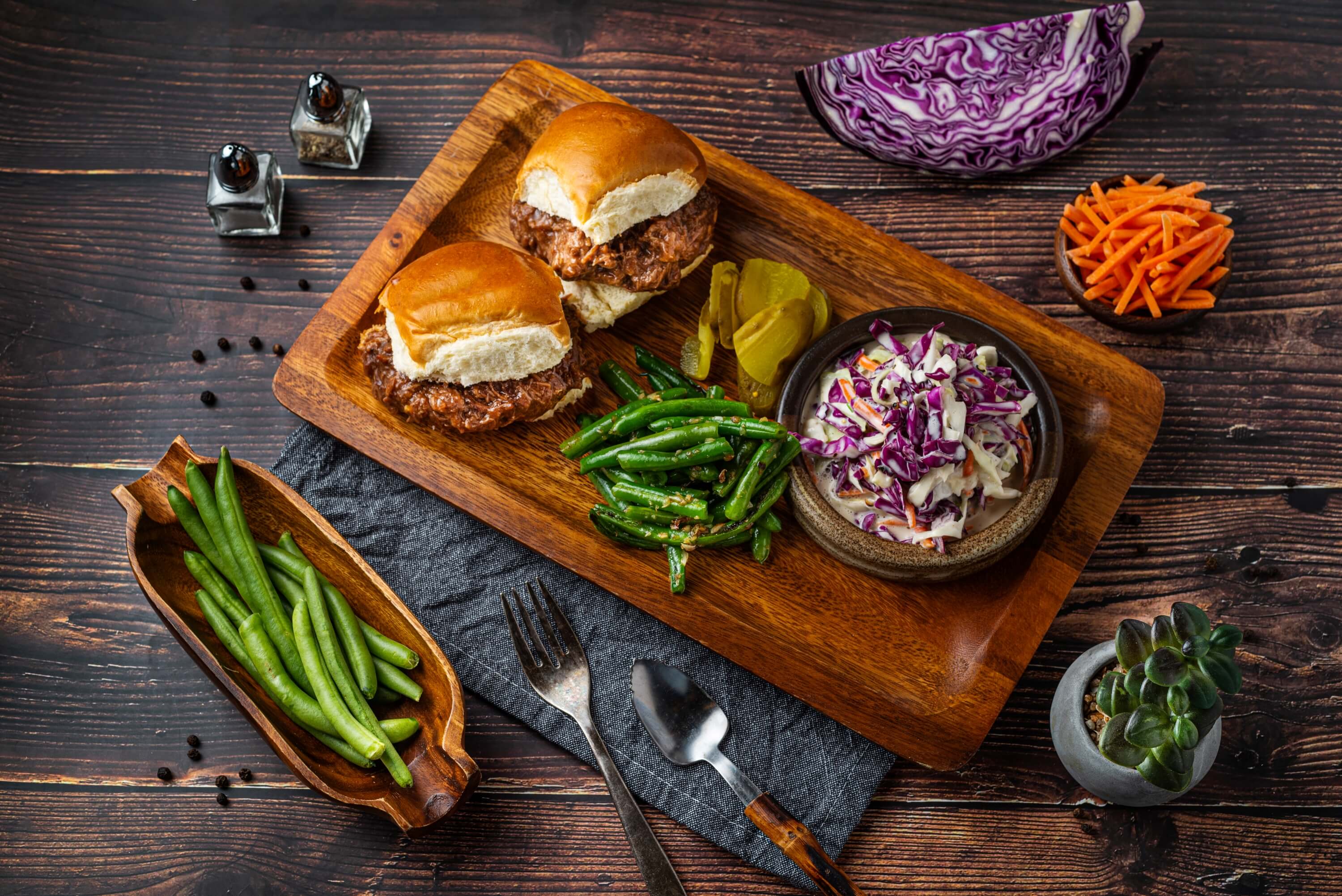Pork, Bun (Wheat flour, Water, Eggs, Sunflower oil, Cane sugar, Salt, Yeast, Barley flour, Lactic acid, Ascorbic acid, Rice flour, Green cabbage, Red cabbage, Carrot, Long bean, Garlic, Onion, Vegetable oil, Salt, Peppercorn, Thyme, Oregano, Brown sugar, Ketchup, Liquid smoke, Cornstarch, Mustard, Tomato paste, Bay leaf, Paprika, Cayenne, Mayonnaise, Sour cream, Lemon, Parsley