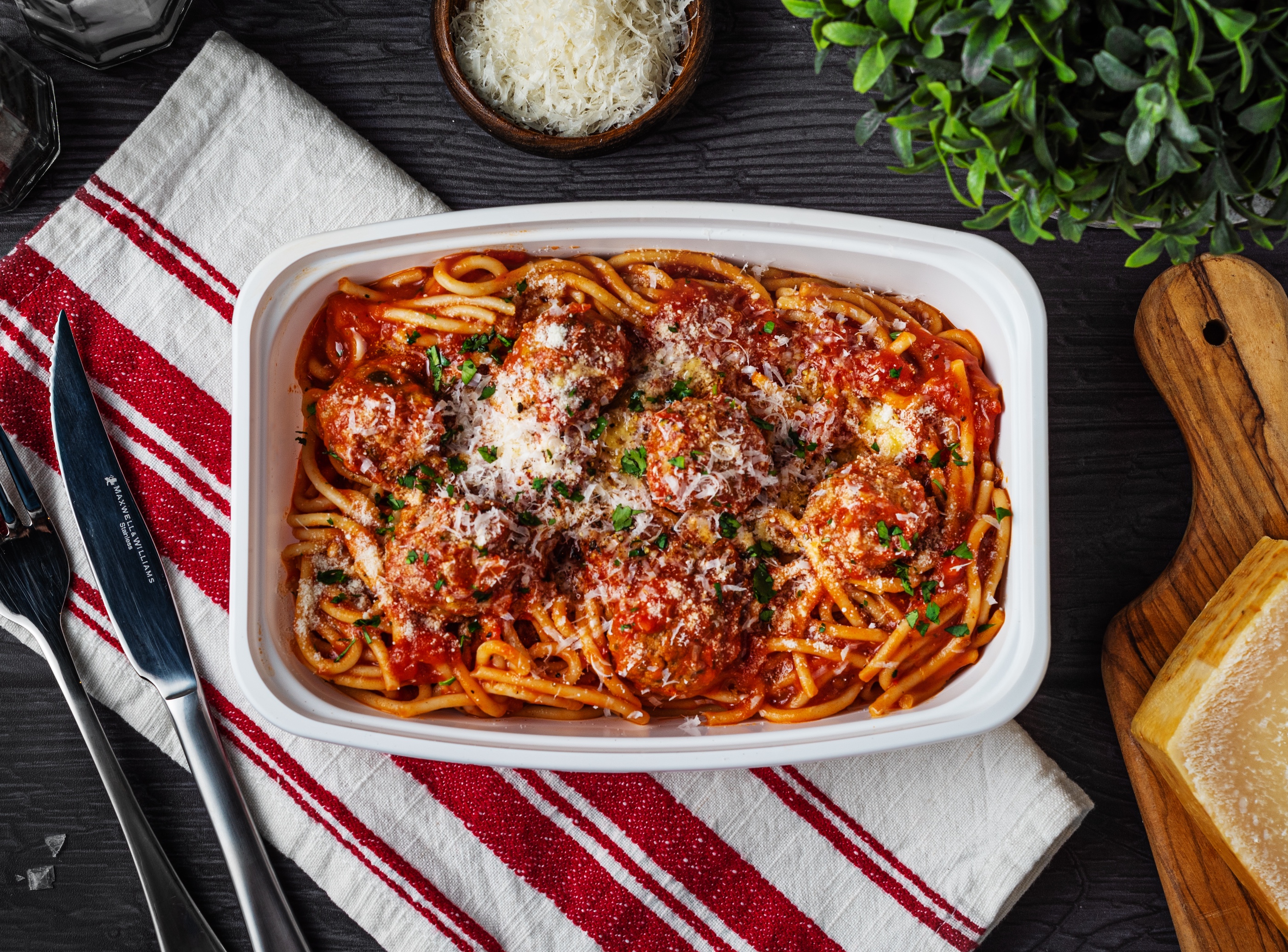 Wheat Gluten, Canola Oil, Soy Protein, Cane Sugar, Garlic Powder, Salt, Sugar, Red Chili Flakes, Pea Protein, Barley, Soy, Wheat, Egg, Bread crumbs (Bread, Dried parsley, Salt, Pepper, Garlic powder), Pasta, Egg, Bread crumbs (Bread, Dried parsley, Salt, Pepper, Garlic powder, Parmesan cheese), Soy protein, Spices, Dehydrated bell pepper, Parmesan cheese, Parsley, Tomato (roma), Garlic, Onion, Basil, Thyme